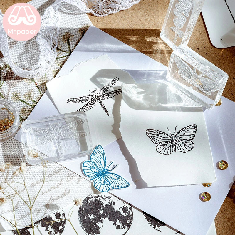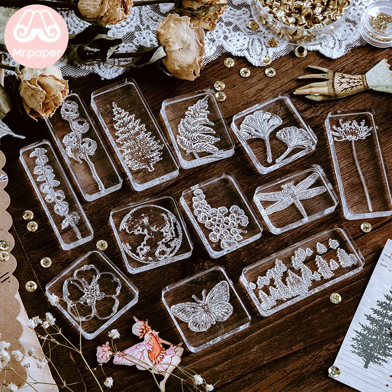 - Product name : Mr Paper 12 Designs Butterfly Plants Moon Transparent Acrylic Seal Stamps for Scrapbooking Deco Cra