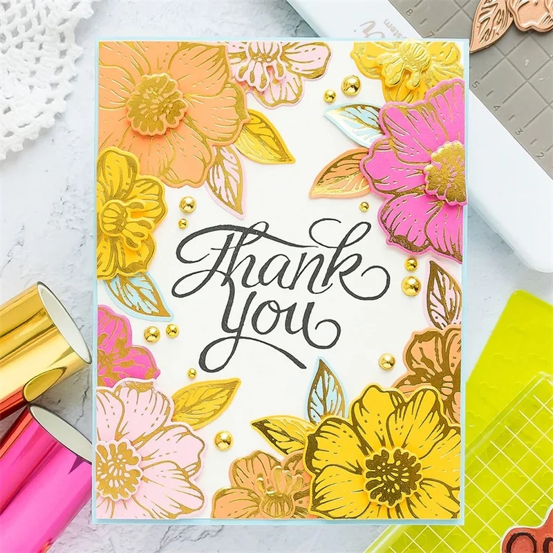 Hello Thank You Layered Flowers Butterflies Metal Hot Foil Plate for DIY Scrapbooking Letterpress Embossing Cards Crafts 2019 : Click Here